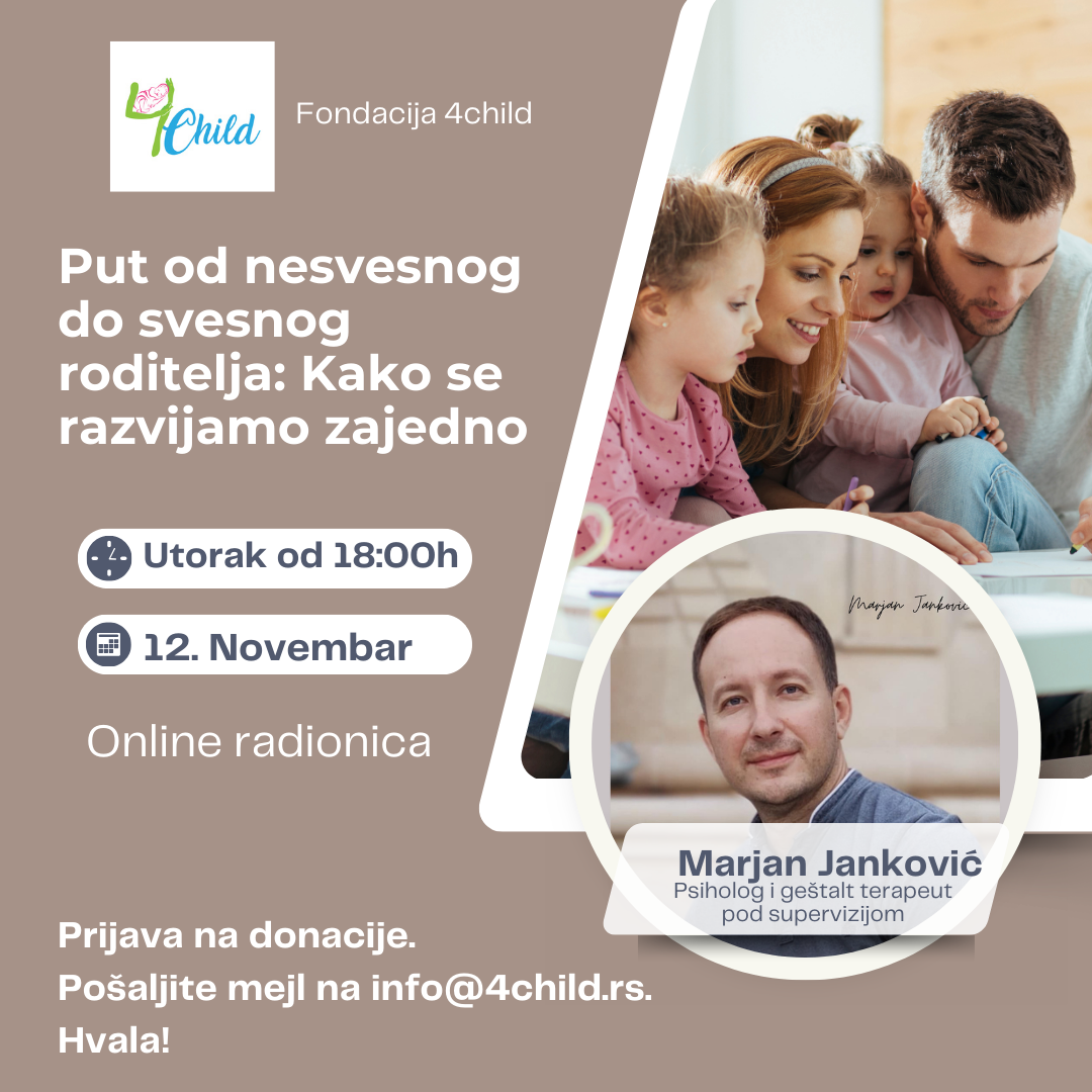 12. Novembra od 18h – Put od nesvesnog do svesnog roditelja: Kako se razvijamo zajedno- Marjan Janković