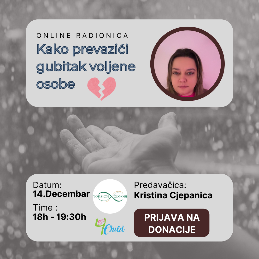 Online radionica: Kako se nositi sa gubitkom voljene osobe, održaće se u subotu 14.12. od 18h.