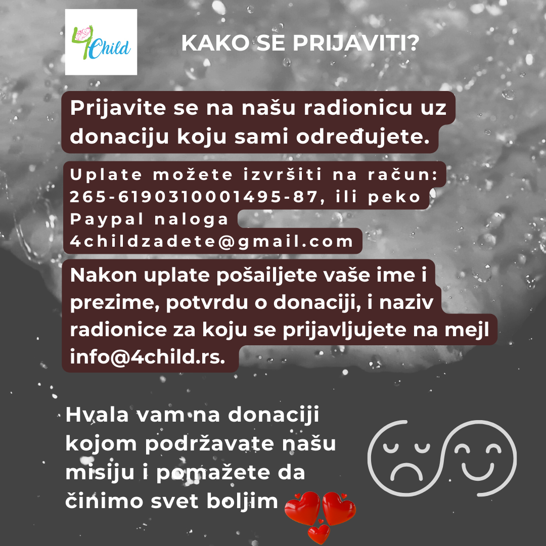 Prijave su na donacije, koliko ko može, i molimo Vas da nam pošaljete mejl na info@4child.rs.
