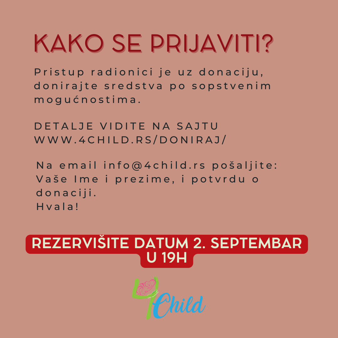 Online radionica će se održati preko Zoom platforme, 2. Septembra od 19h.